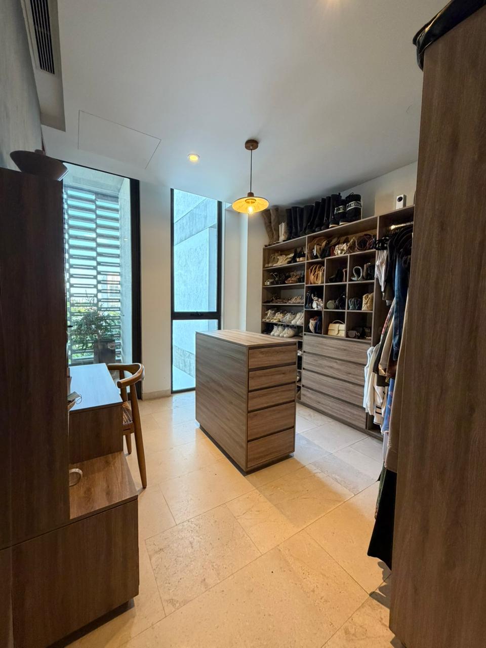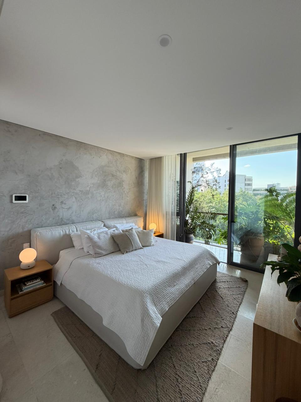 La distribución del departamento es de 2 recámaras secundarias que comparten un baño muy amplio completo (alguna de estas puedes utilizarlas como estudio o cuarto de tele también) y la recámara principal tiene walking closet, baño completo y acceso al balcón con vista hacia el parque.